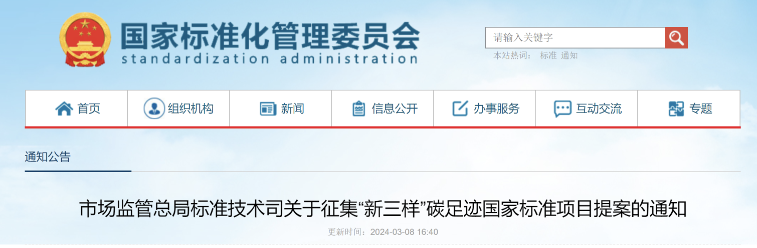 市场监管总局标准技术司关于征集“新三样”碳足迹国家标准项目提案的通知